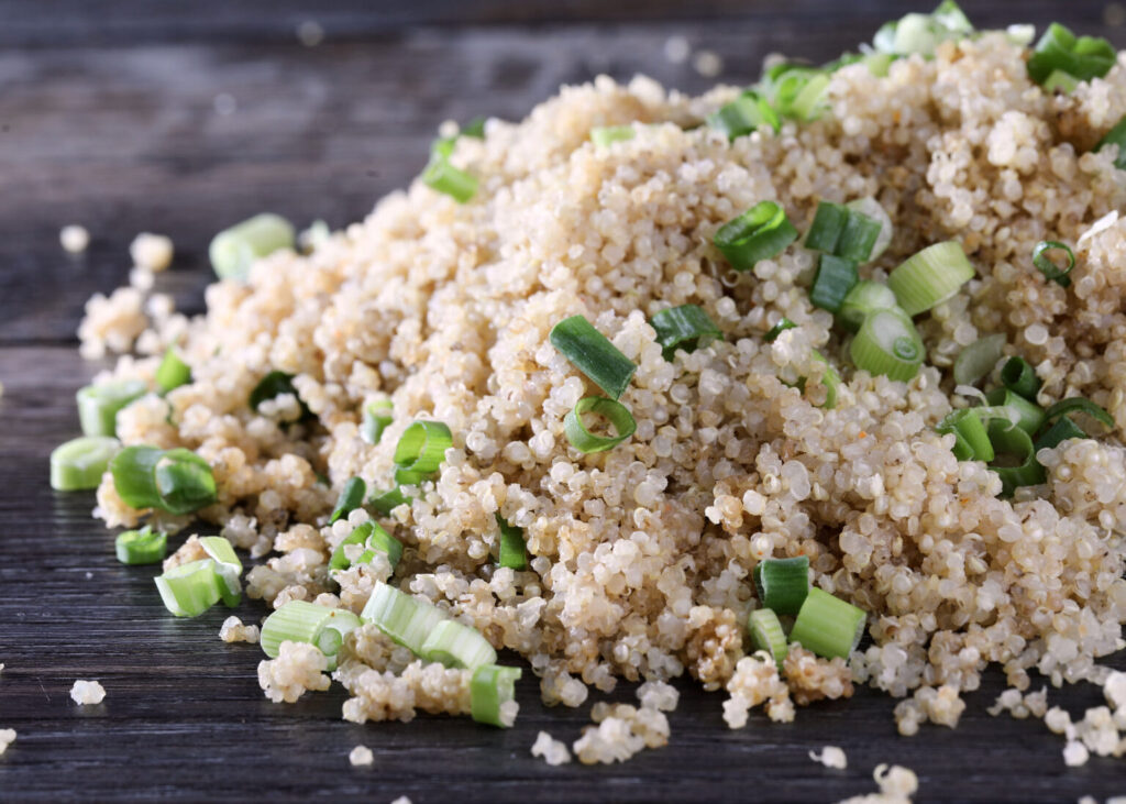 Quinoa cooked in Vegetable base, garnished with green onions