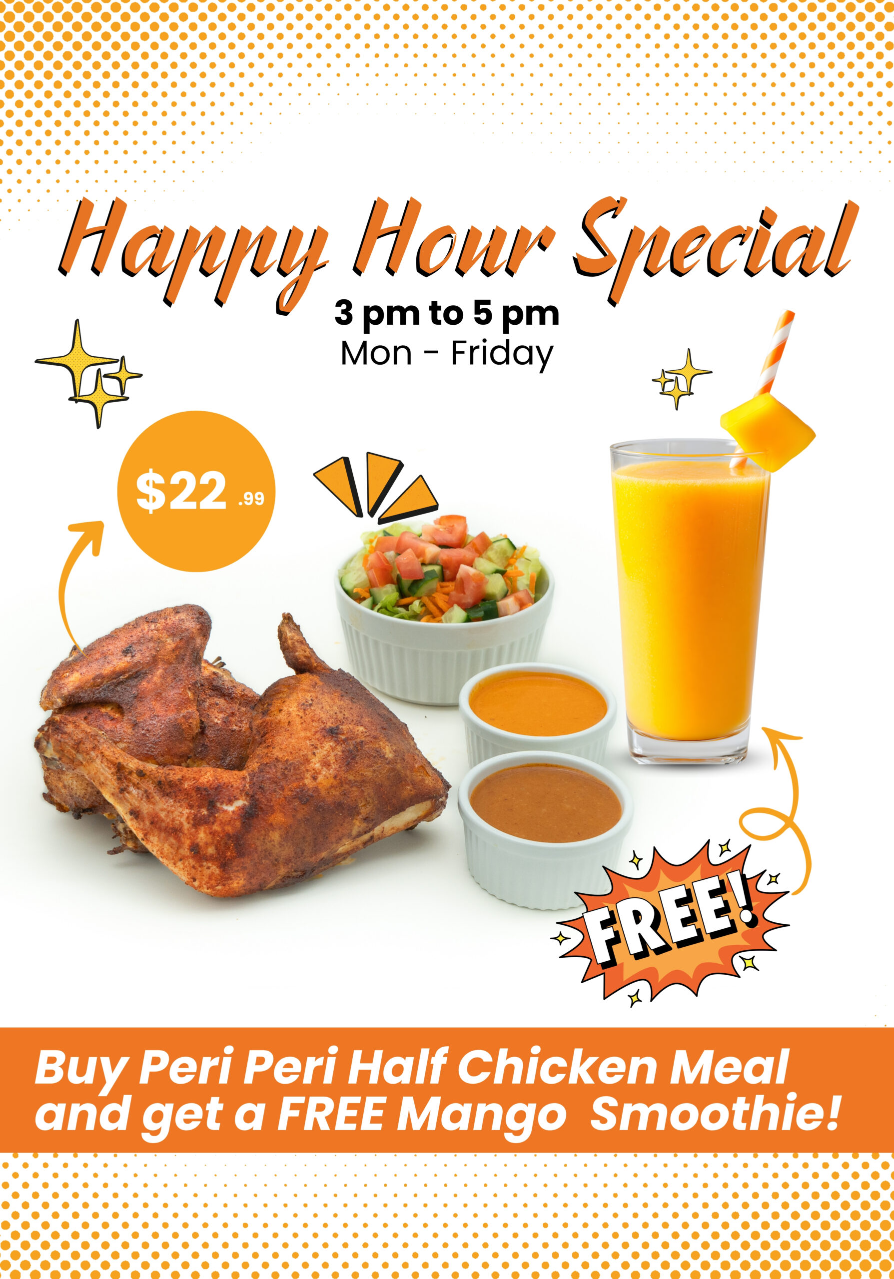 Chicken wings tossed with choice of Mild, Medium or Hot Peri Peri Sauce, garnished with green onions.